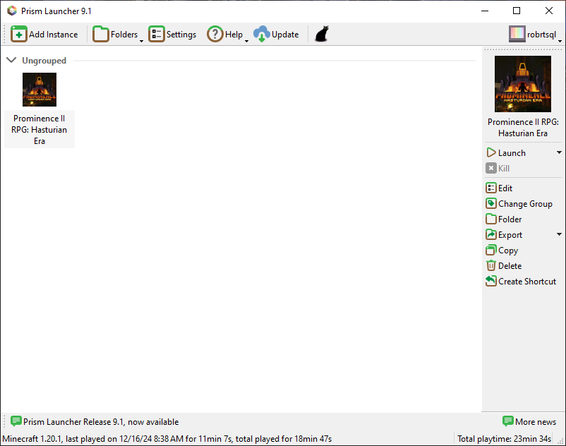 Once you download and install Prism Launcher, and sign into your Microsoft account, it is time to add and install an 'instance' of Minecraft with the modpack installed.